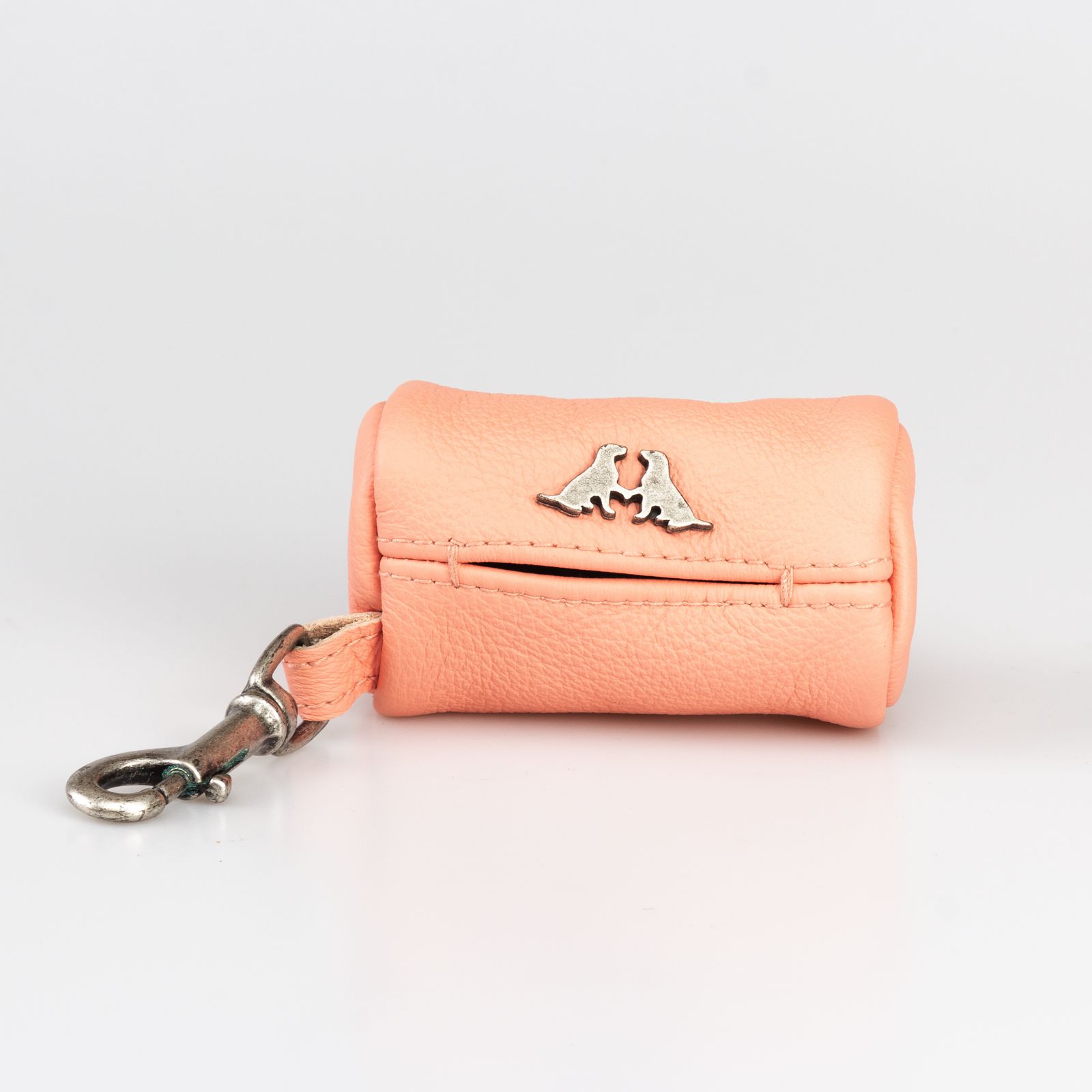 Leather holder for hygienic bags, colour -coordinated with collar and leash.